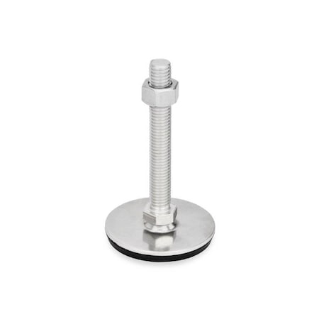 J.W. Winco 10N60SA6/GV Series GN 440.5 Stainless Steel Leveling Feet with Rubber Pad, Metric Size, M10 x 1.5 Thread Size, 50mm Base Diameter, 60mm Thread Length