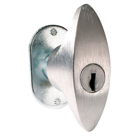 'T-Handle Keyed Cam Lock, Key Type Alike, Dull Chrome Finish, Key Number 915, Weather Resistant No, For Door Thickness (In.) 1/8, Mounting Hole Dia. (In.) 3/4, Max. Latching Distance (In.) 0, Number of Keys 2, Cam Width (In.) 1/2, Cam Length (In.) 1-7/16, Offset (In.) 0, Head Dia. (In.) 1-1/16, Includes Latch Plate, Mounting Nut, Screw for Latch Plate, Unlock Turn Direction Left, Unlocking Radius (Deg.) 90, Number of Pins 4'