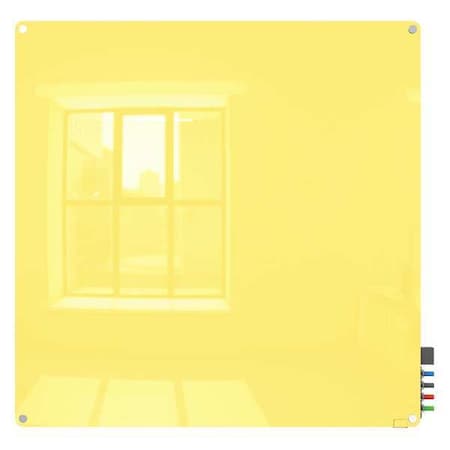 Dry Erase Board, Board Properties Magnetic, Mounting/Mobility Type Wall Mounted, Board Color Yellow, Dry Erase Height 48 in, Dry Erase Width 48 in, Depth 1 5/8 in, Dry Erase Surface Finish Gloss, Adjustable Height Range Not Adjustable, Board Frame Material No Frame, Dry Erase Surface Type Glass, Corner Shape Rounded, Includes (4) Rare Earth Magnets, Aluminum Stand-Offs, Clear Acrylic Rear-Mounted Accessory Holder, Eraser, Markers, Standards TAA Compliant