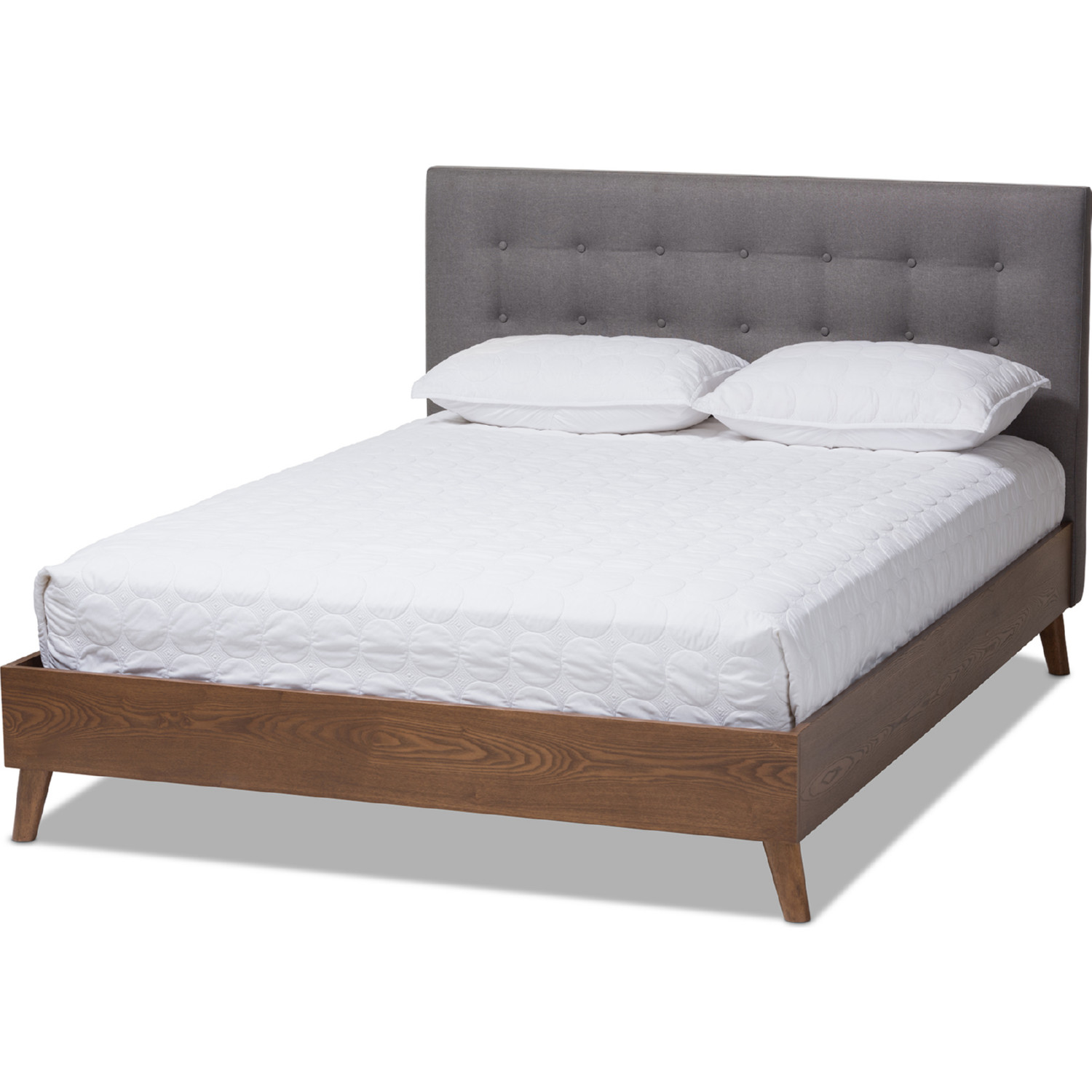 Baxton BBT6729-Grey-King Alinia King Platform Bed in Tufted Gray Fabric & Walnut Finish
