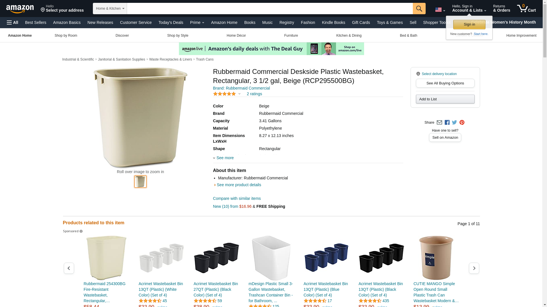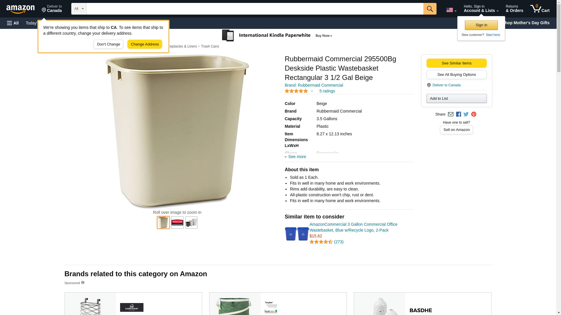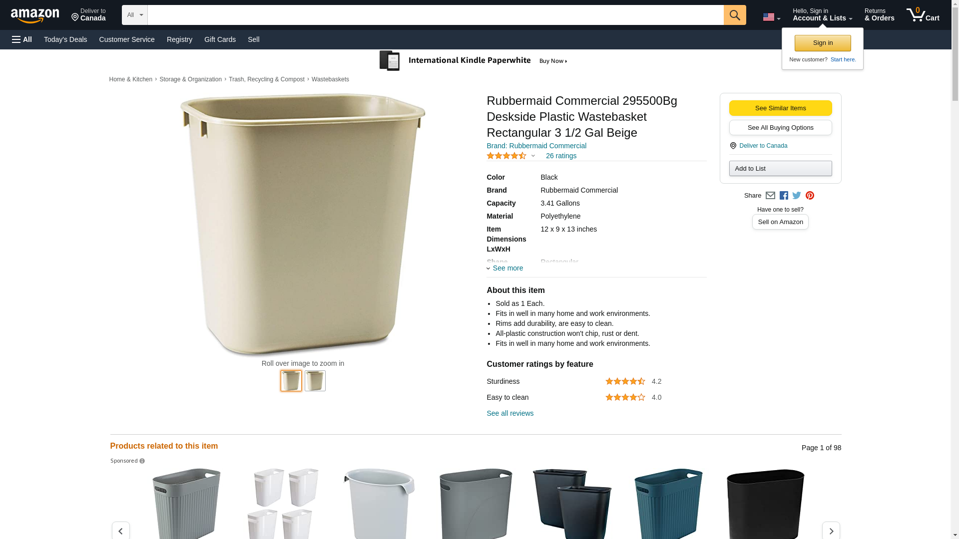 | Feature | Rubbermaid Commercial Products Rectangular Wastebasket,13 Qt,8-1/4"x11-3/8"x12-1/8",Beige |