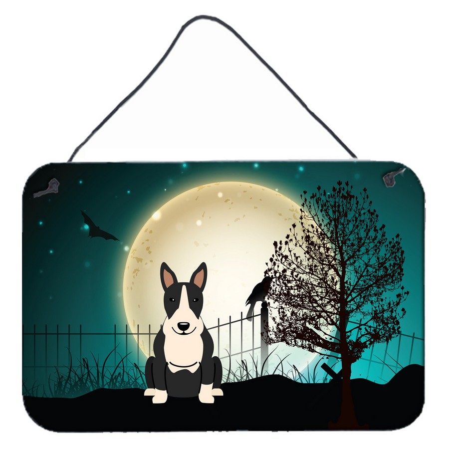 Caroline's Treasures BB2323DS812 Halloween Scary Bull Terrier Black White Wall or Door Hanging Prints Aluminum Metal Sign Kitchen Wall Bar Bathroom Plaque Home Decor, 8x12, Multicolor
