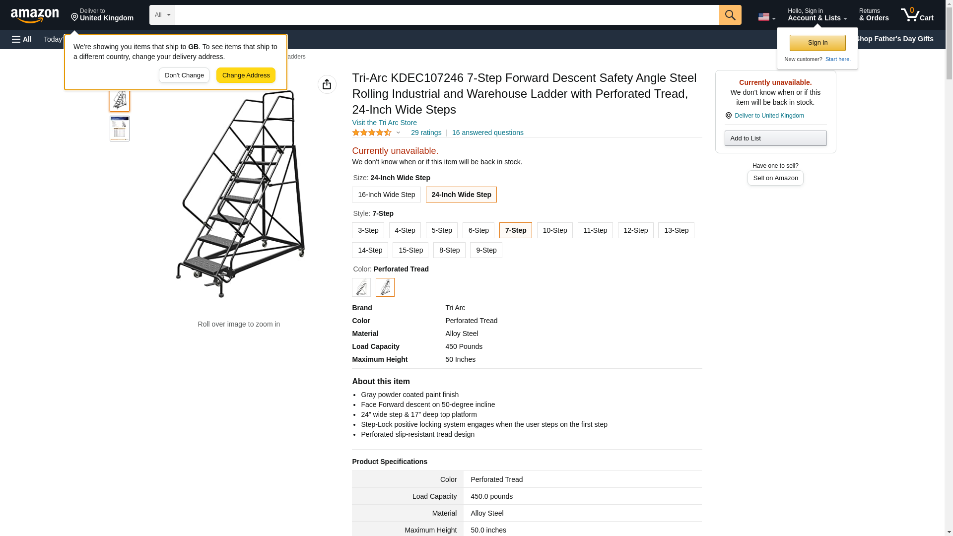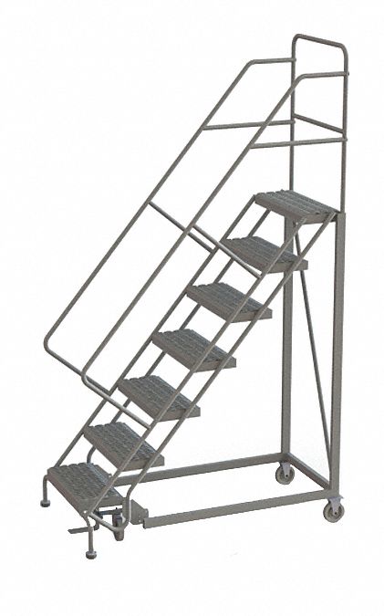 Tri-Arc KDEC107246 7-Step Forward Descent Safety Angle Steel Rolling Industrial and Warehouse Ladder with Perforated Tread, 24-Inch Wide Steps
