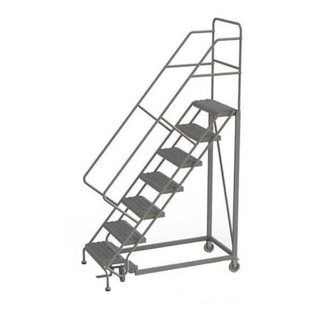 Tri Arc Mfg 7 Step 24"W Steel Safety Angle Rolling Ladder, Perforated Tread, Gray - KDEC107246