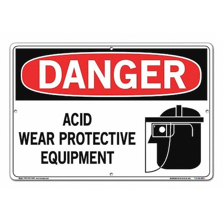 Vestil SI-D-52-D-AL-063 ACID WEAR PROTECTIVE EQUIPMENT Danger Sign, Aluminum, 0.063" Overall Size, 18.5" W x 12.5" H
