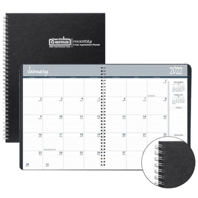 HOD262092 - House of Doolittle Monthly Calendar Planner 2 Year Black Hard Cover 8-1/2 x 11 Inches, HOD 262092