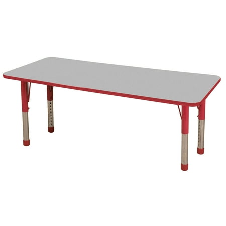ECR4Kids 30" x 72" Rectangular Activity Table, Gray Top/Red Edge, Chunky Legs, Eight 12" Red School Stack Chairs w/Ball Glides