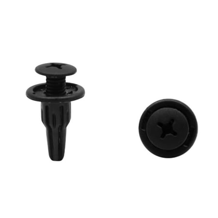 <li>Interchange Part Number: Under Engine Splash Guard Rivet Fastener Clips;Manufacturer Part Number: Plastic Push-Type Bumper Retainer Clip;Other Part Number: Screw Fender Body Door Trim Panel Hood</li> <li>Applications1: Defender Door Card Interior Weatherstrip Moulding;Applications2: NYLON CHRISTMAS TREE Carpet Floor Mat Clips</li> <li>Package Content: 100(+/-2%) x Rivets;Fit Hole Size: 10mm/0.4";Head Diameter(max.): 20mm/0.8"</li> <li>Stem Length: 23mm/0.91";Total Length: 25mm/1"</li>