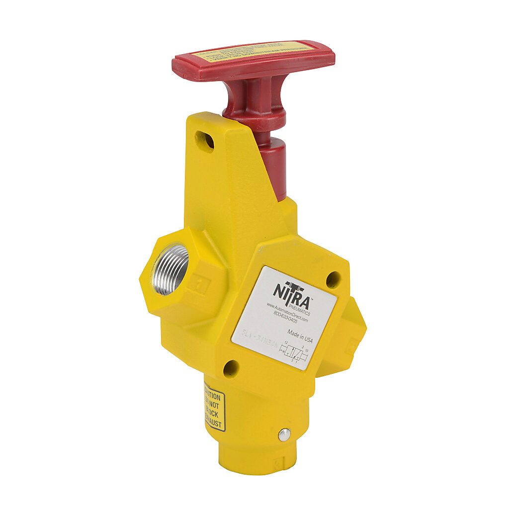 SLV-34N34N - NITRA lockout valve, OSHA compliant, 3/4in female NPT inlet(s), 3/4in female NPT outlet(s), 3/4in female NPT exhaust(s), aluminum body.