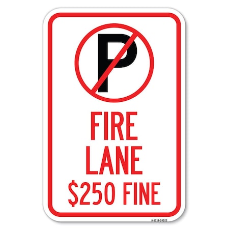 Fire Lane $250 Fine With No Parking Symbol Heavy-Gauge Aluminum Sign