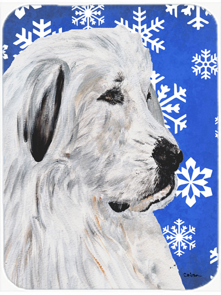 Caroline's Treasures SC9786LCB Great Pyrenees Winter Snowflakes Glass Cutting Board Large Size, 12H x 16W, multicolor