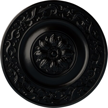 Ekena Millwork CM47MIBLF Milan Ceiling Medallion, 47 5/8"OD x 2 3/4"P, Hand-Painted Jet Black