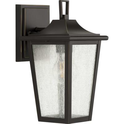 Padgett Collection 1-Light Antique Bronze Outdoor Wall Lantern with Clear Seeded Glass Shade Transitional Coastal