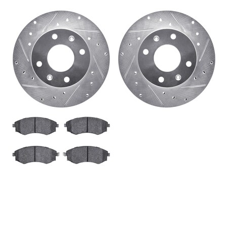 7302-72065, Rotors-Drilled and Slotted-Silver with 3000 Series Ceramic Brake Pads, Zinc Coated