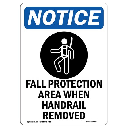 OSHA Notice Sign, Fall Protection Area With Symbol, 24in X 18in Rigid Plastic