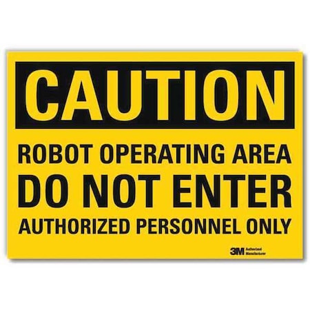 Safety Sign, Horizontal Rectangle, Number of Printed Sides 1, English, Sign Format Traditional OSHA, Sign Legend Robot Operating Area Do Not Enter Authorized Personnel Only, Sign Legend Background Color Yellow, Sign Legend Style Text