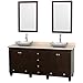 Wyndham Collection Acclaim 72 inch Double Bathroom Vanity in Espresso, Ivory Marble Countertop, Avalon White Carrera Marble Sinks, and 24 inch Mirrors