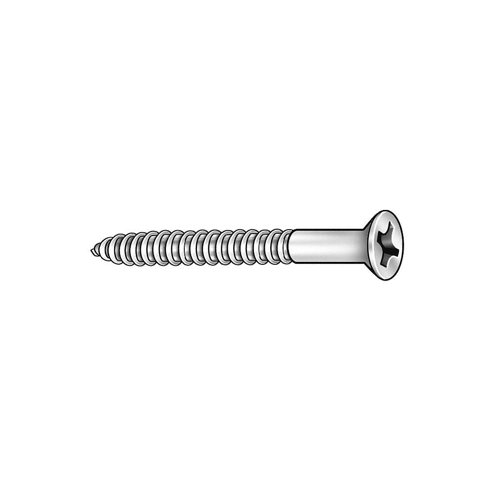 'Wood Screw, Flat Head, Carbon Steel, Size #4, Length 1/2 In, Phillips, Driver Size #1, Head Diameter 0.195 In, Head Height 0.067 In, Head Angle 82 Deg, Finish Zinc, Meets/Exceeds ANSI/ASME B18.6.1, Package 100'