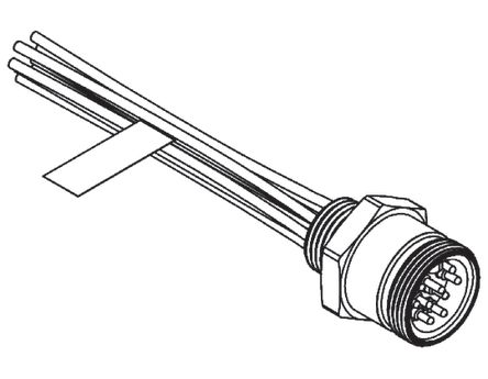 Brad 3R9006A20A120 Mini-Change C-Size Receptacle with Lead, Male Straight, External Thread, 9 Pole, UL 1015 Cable Type, 16AWG Wire Size, 7.0A Max Current Rating, 600V AC/DC Max Voltage, 1ft Cable Length