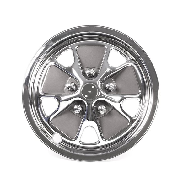 Compatible with 1965-1967 Ford Mustang. This product is not created or sold by Ford.;<br><br>Gives the illusion of real Styled Steel wheels at one third of the price. Constructed from heavy duty A.B.S. plastic. Also features correct charcoal painted recessed area's and chrome simulated Lug Nuts. Now even 6 cylinders can have an 8 cylinder look. Photo at left is plastic hub cap installed on rim. Center cap not included.;