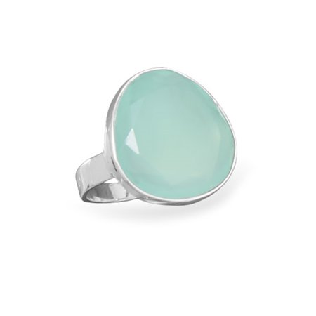 Freeform Faceted Dyed Sea Green Chalcedony Ring Sterling Silver