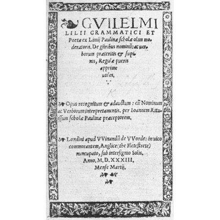 Stretched Canvas Art - William Lily (C1468-1522). /Nenglish Grammarian. Title Page To A 1533 Edition Of William Lily'S Book On English Grammar. - Large 24 x 36 inch Wall Art Decor Size.