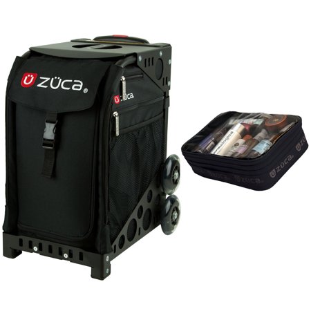 <ul> <li><b>Bundle Includes</b> <ul> <li>ZUCA Obsidian Sport Insert Bag (Black)</li> <li>ZUCA Sport Frame w/ LED Flashing Wheels (Black)</li> <li>ZUCA Large Utility Pouch (2.5 x 7.75 x 11 inches)</li> </ul></li> <li>Inspired by aerospace technology, lightweight aluminum alloy frame with 39.5-inch telescoping handle</li> <li>Dual vertically-mounted, magneto dynamic 4-inch polyurethane wheels absorb shock and make for a serious silent ride</li> <li>Top platform seat supports loads up to 300 pounds</li> <li>Two nylon-6 feet at the front are durable but gentle on easily scratchable floors</li> <li>Removable, hand washable insert bag is made from premium water-resistant 600D polyester</li> <li>Insert bags zippered front-loading flap features two pockets and a zippered storage on the inside</li> <li>One mesh and two zippered pockets on each side of the bag for storing documents and small accessories</li> <li>Vinyl-coated interior / Chrome-plated and rust-resistant screws</li> <li>Measures 18 x 12.25 x 14.75 inches (including wheels) and weighs 9.4 pounds (bag and frame)</li> </ul>