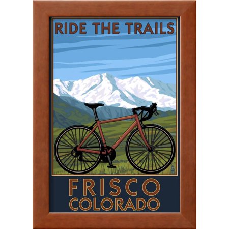 <ul> <li>Title: Frisco, Colorado - Mountain Bike and Mountains</li> <li>Artist: Lantern Press</li> <li>Product Type: Framed Art Print</li> <li>Framed in SOHO Pecan</li> <li>Arrives ready-to-hang for fast, simple installation</li> <li>Framed Size: 12x17 in.</li> <li>Handcrafted in the USA</li> </ul>