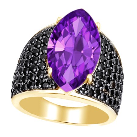 <ul> <li>Metal Type : 14k Yellow Gold Over Sterling Silver GUARANTEED, Authenticated with a 925 Stamp</li> <li>Gem Type :- Simulated Amethyst (Lab Created); Simulated Black Spinel (Lab Created)</li> <li>Stone Shape :- Marquise Shape & Round Shape</li> <li>Stone Setting type :- prongs</li> <li>Stone Clarity :- VVS1-VVS2 & VVS1-VVS2, Stone Color :- Violet; Black</li> </ul>