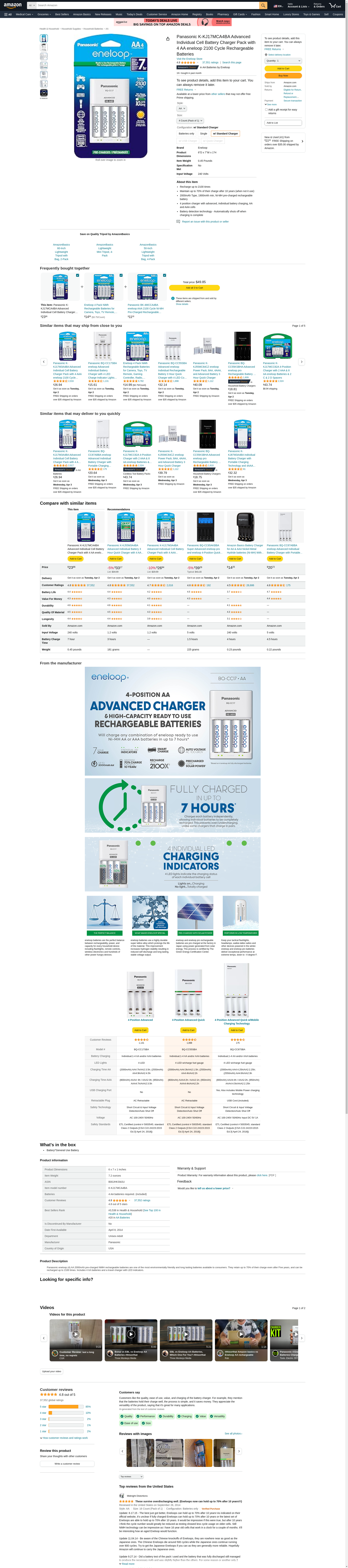 Panasonic K-KJ17MCA4BA Advanced Individual Cell Battery Charger Pack with 4 AA eneloop 2100 Cycle Rechargeable Batteries