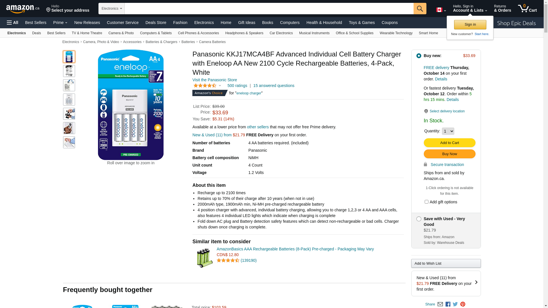 Eneloop Sanyo Universal 4-Position Charger Set with 4 AA Ni-MH Batteries 2nd Generation K-KJ17MCA4BA | 17% Off