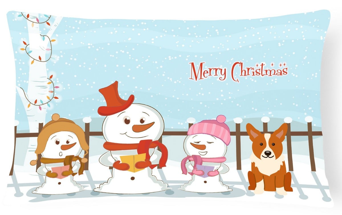 Carolines Treasures BB2431PW1216 Merry Christmas Carolers Corgi Canvas Fabric Decorative Pillow