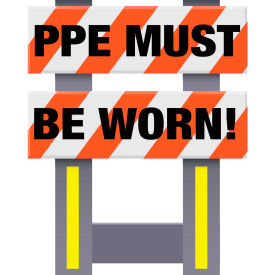 Vestil FSB-3832-OR-022 Corrugated Plastic Folding Safety Barricade "PPE Must Be Worn" Orange | MROSupply.com