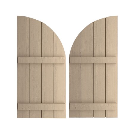 Ekena Millwork SHUBJQ22X78RCPR (56" Low Side) Timberthane Four Joined Board-n-Batten w/Quarter Round Arch Top Faux Wood Shutters (Per Pair), Primed Tan, 22" W x 78" H