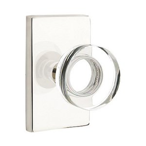 Crystal Door Hardware Collection - Modern Disc Glass Privacy Door Knob and Modern Rectangular Rose with Concealed Screws in Polished Nickel by Emtek Hardware - C5212MDCUS14234 | MyKnobs
