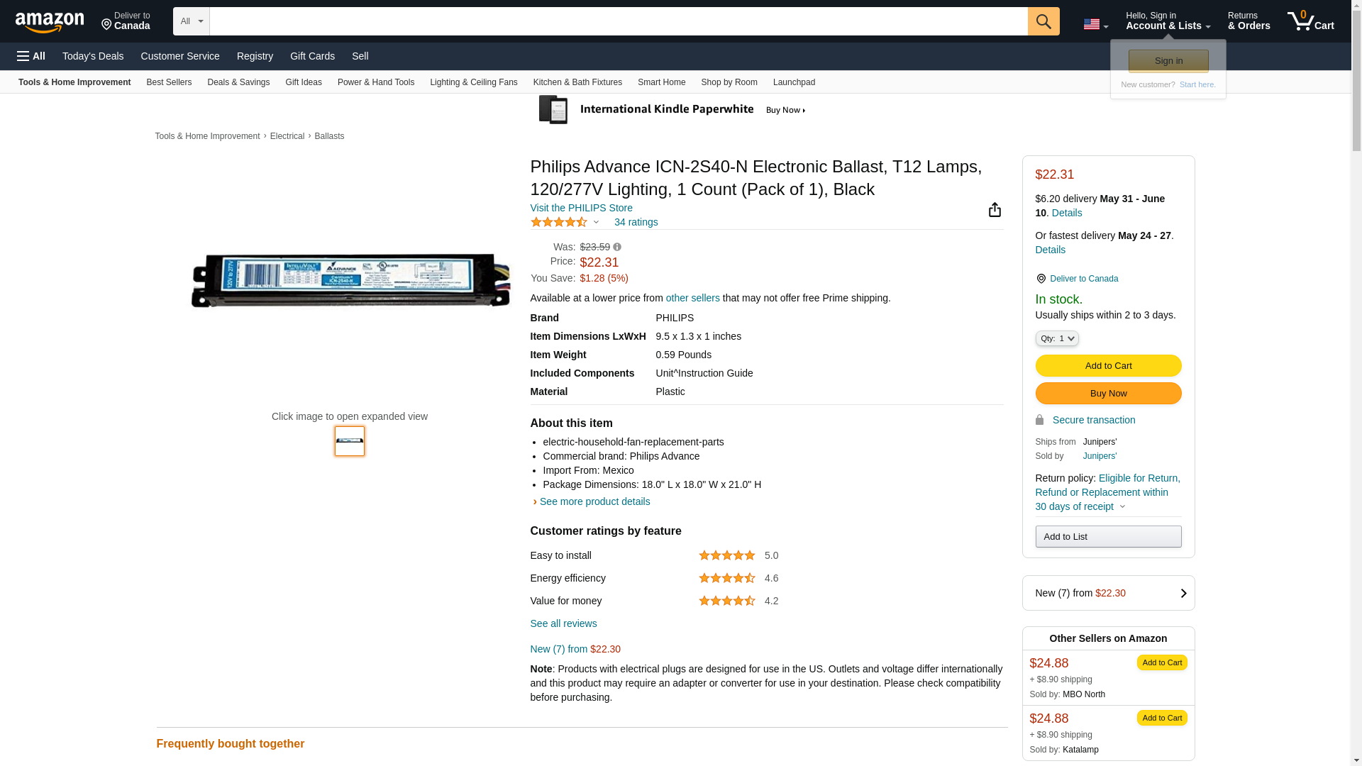 Philips Advance ICN-2S40-N Electronic Ballast, T12 Lamps, 120/277V Lighting, 1 Count (Pack of 1), Black