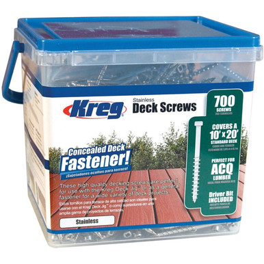 #8 x 2" Coarse Stainless Steel Deck Screw, 700ct, Kreg# SDK-C2SS-700