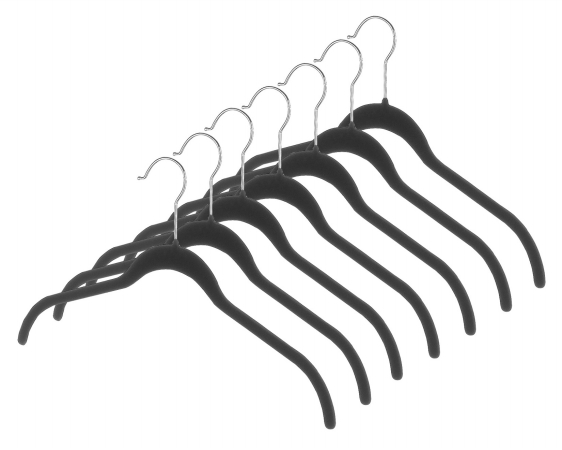 SPACEMKR DRESS HNGER 7PK Whitmore's space maker flocked dress/shirt hangers feature a thin design to add more room in your closet to hang clothes. The hangers are flocked in a velvet-like material so clothes won't fall off. Each hanger is black in color and comes in a set of 7. The Space maker hangers feature a steel hanger hook.
