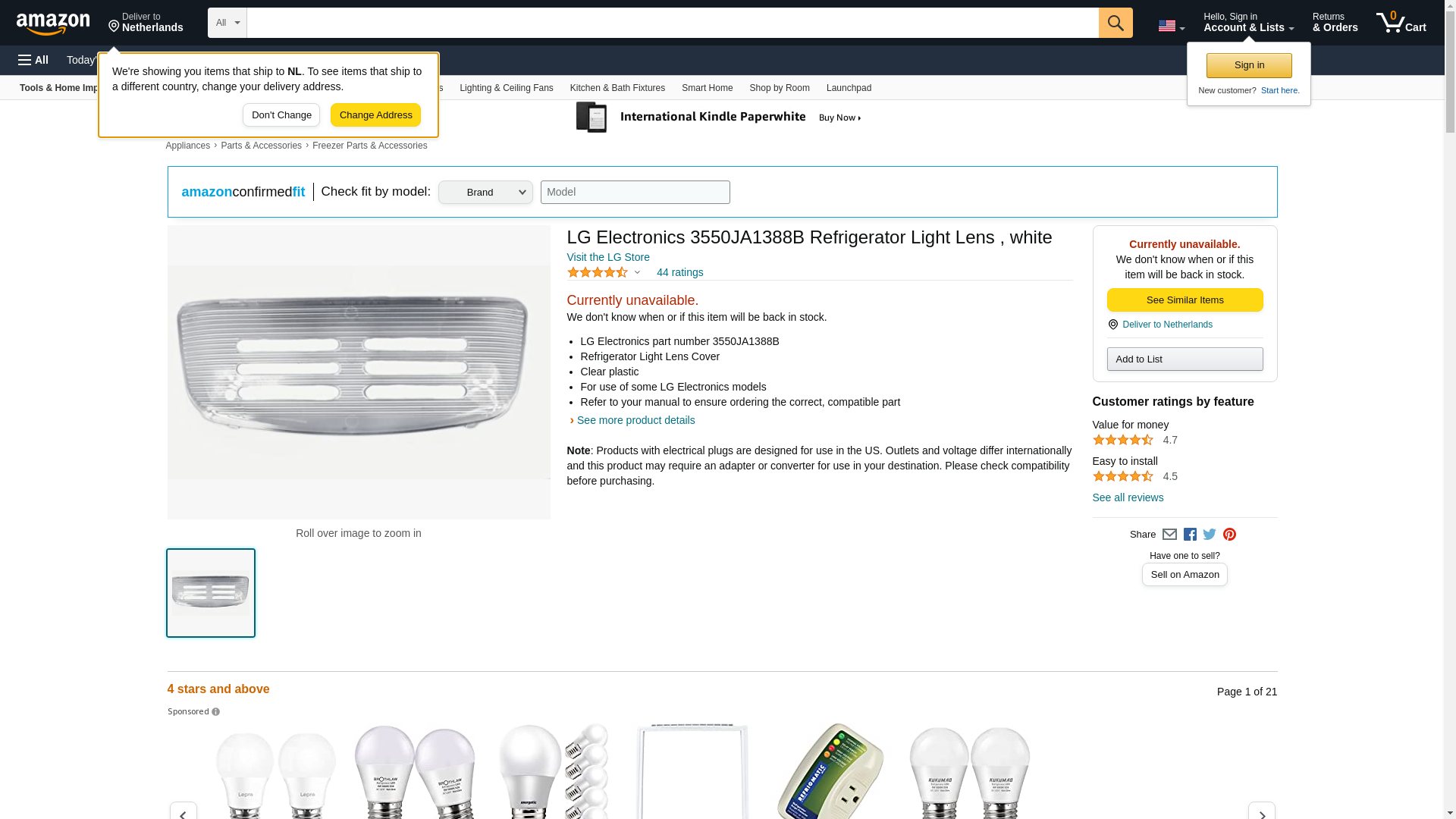 LG Electronics 3550JA1388B Refrigerator Light Lens by LG