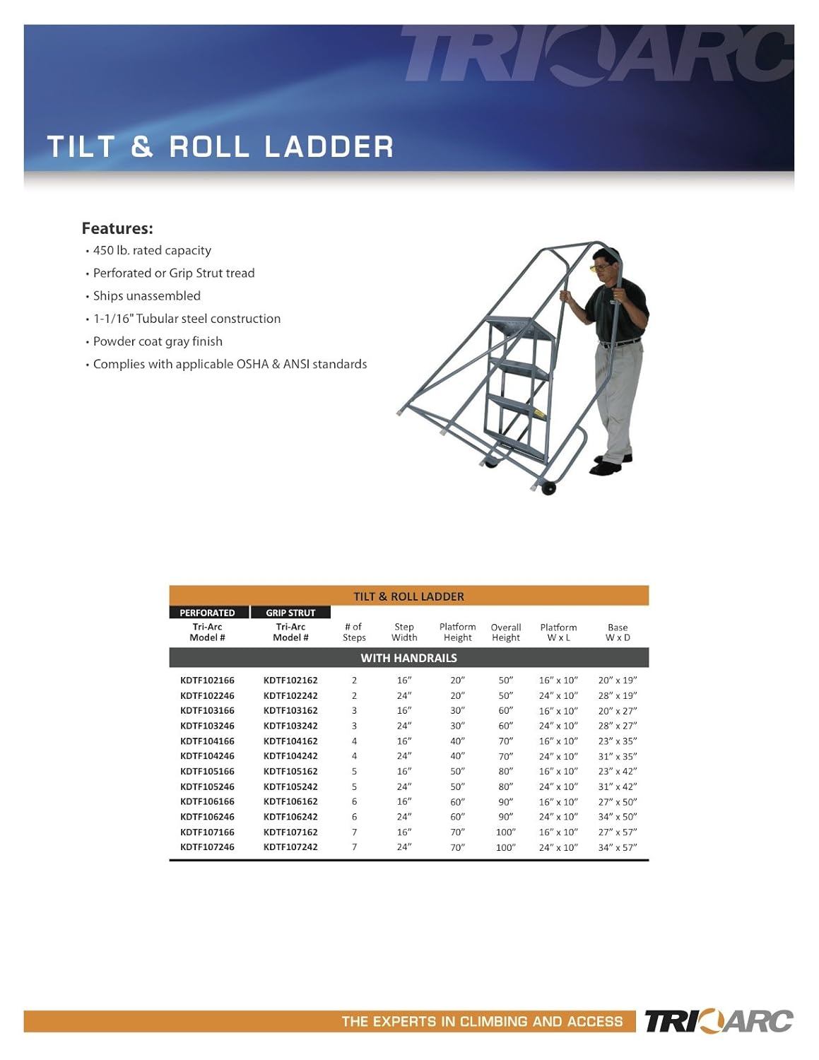 Tri-Arc KD107162 7-Step Tilt and Roll Industrial & Warehouse Steel Ladder with Grip Strut Tread, 16-Inch Wide Steps