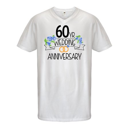 Inktastic 60 Year Wedding Anniversary With Roses Banner And Men's V-Neck T-Shirt