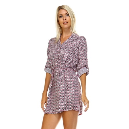 Marcelle Margaux Women's Button Up Waist Tie Dress - Fuchsia Black - Large