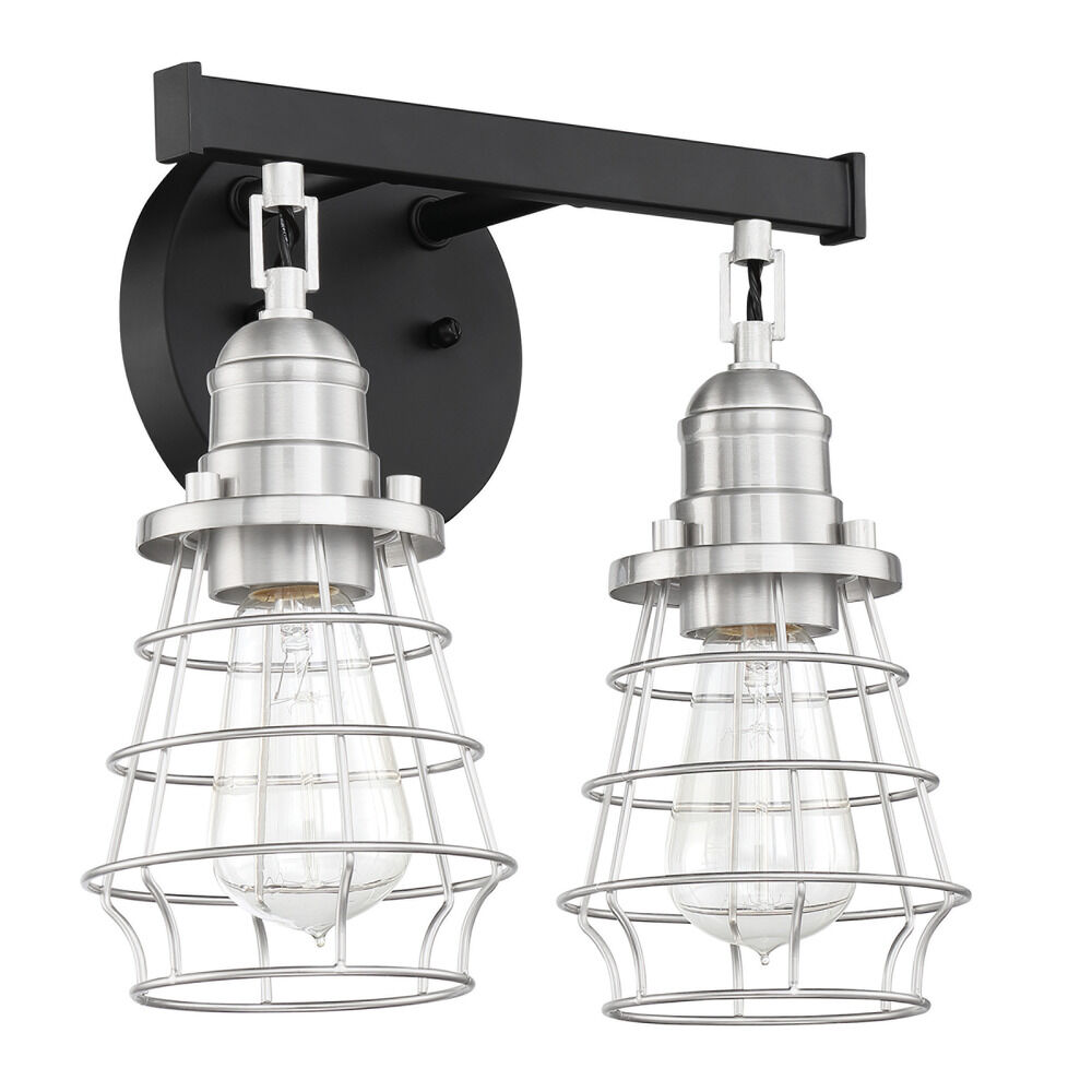 Craftmade 50602-FBBNK Thatcher Vintage Industrial Metal Wire Cage Vanity Bath Lighting, 2-Light 200 Watts, Flat Black/Brushed Polished Nickel