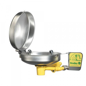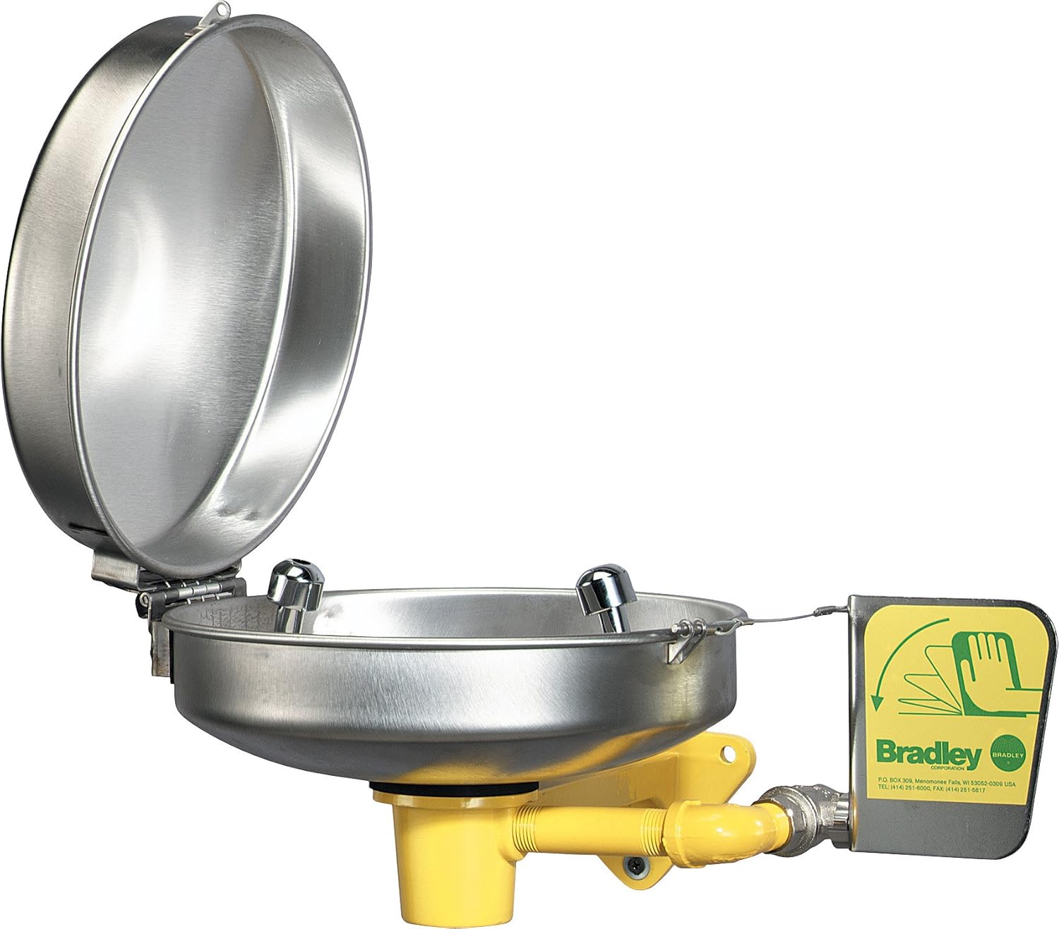 Safety Eyewash. Wall Mounting. Stainless Steel Bowl with Hinged Stainless Dust Cover. Galvanized Steel Pipe with BradTect Safety Yellow Coating. Hand Activated. 1/2" NPT Water Supply . 1¼" Drain Fitting for Eye or Eye/Face Wash. Chrome Plated Brass Eyewash. Universal identification sign and inspection tag included. Complies with ANSI Standard Z358.1 when installed and used properly. Manufacture's limited warranty.