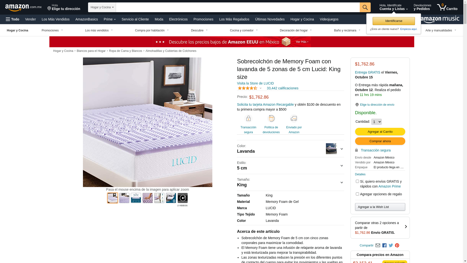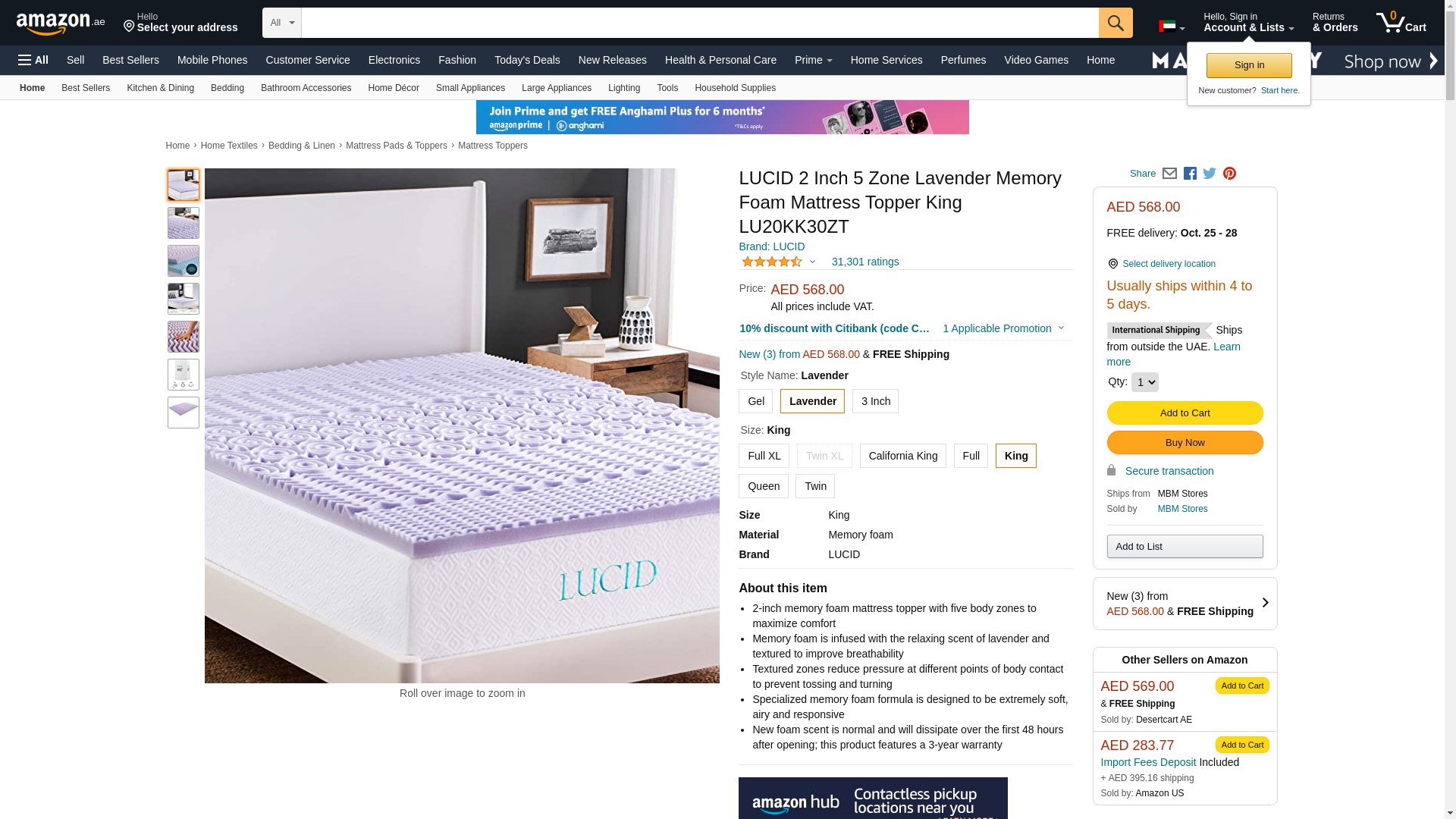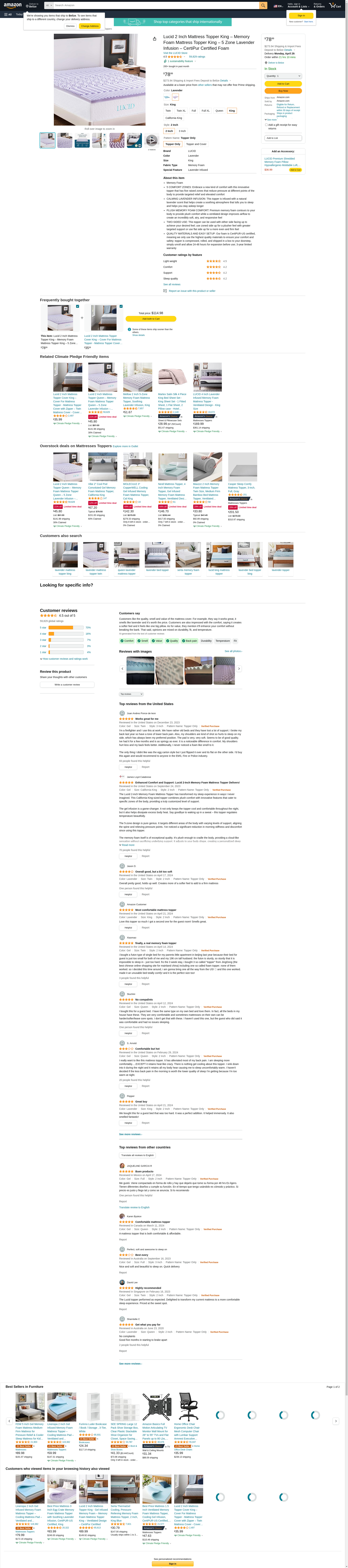 LUCID 2 Inch 5 Zone Lavender Memory Foam Mattress Topper - King: Maxedbuy.com