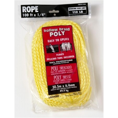 Lehigh Group DF4100W-P Lehigh Df4100Hd Hollow Braided Rope, 1/4 in Dia X 100 Ft L, 100 Lb