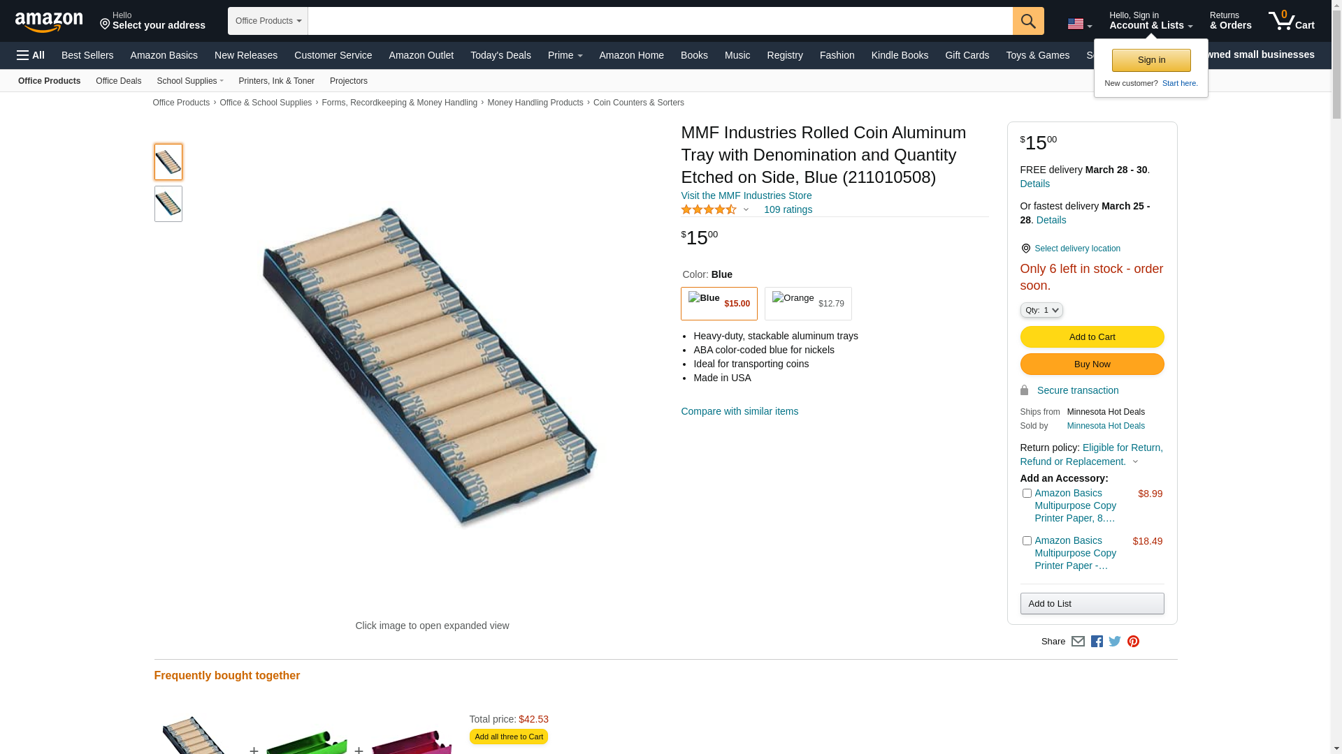 Blue MMF211010508 - MMF Industries Rolled Coin Aluminum