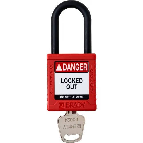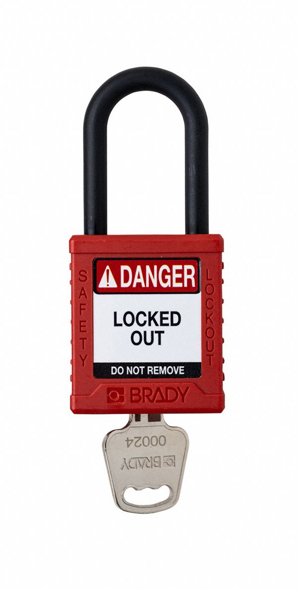 Brady SDPL-RED-38PL-KD Safety Lockout Padlock Plastic 1.5 In Nylon Shackle Red Keyed Different | Graybar Store