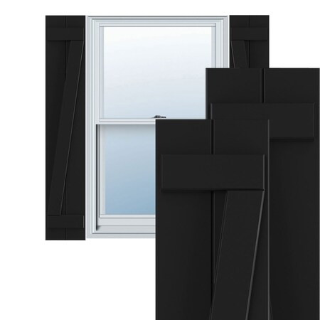 10 3/4"W x 80"H True Fit PVC Two Board Joined Board-n-Batten Shutters w/Z-Bar, Black (Per Pair - Hardware Not Included)