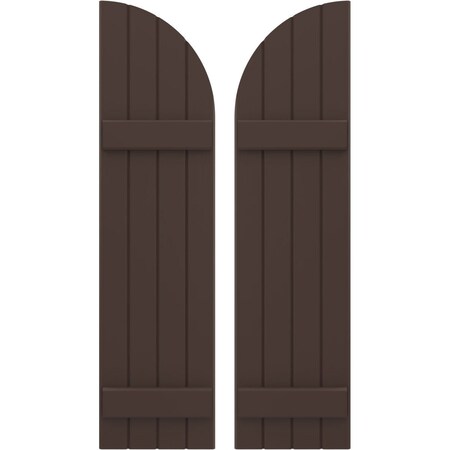 Ekena Millwork ARW101BQ414X82TBH Americraft Four 2 Exterior Real Wood Joined Board-n-Batten Shutters w/Arch Top (Per Pair), 14"W x 82"H, Raisin Brown